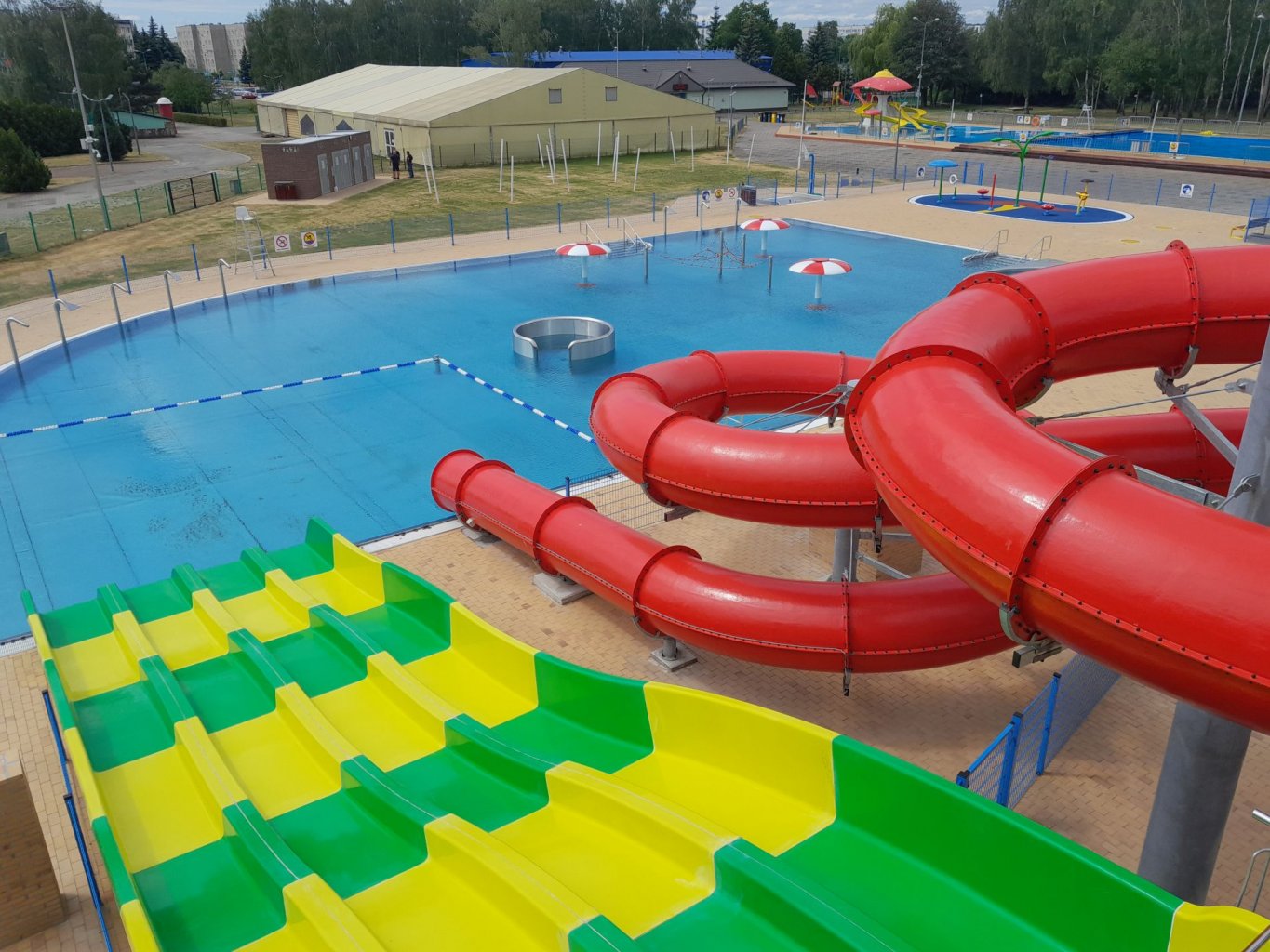 Byliśmy wykonawcą technologii basenowych dla firmy Urbex podczas rozbudowy basenów otwartych Grzybek o nową część która zawierała m.in. basen rekreacyjny z atrakcjami oraz zjeżdżalniami wodnymi.