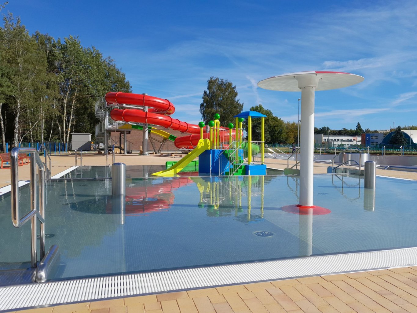 Byliśmy wykonawcą technologii basenowych dla firmy Urbex podczas rozbudowy basenów zewnętrznych Grzybek której częścią był m.in. brodzik dla dzieci składający się z dwóch niecek o różnej głębokości połączonych ślizgiem oraz wyposażony w zabawki wodne takie jak grzybki czy gejzery.