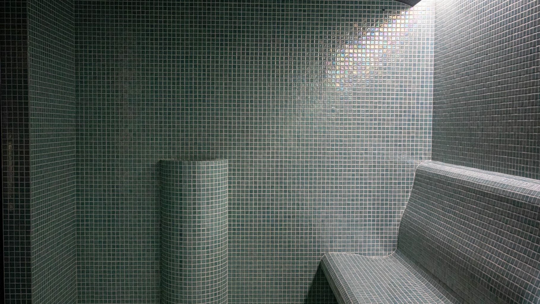 Byliśmy generalnym wykonawcą strefy SPA & Wellnes w hotelu Złoty Horyzont w Szklarskiej Porębie. Jednym z elementów tej strefy była łaźnia parowa (często nazywana sauną rzymską) czyli pomieszczenie o wilgotności sięgającej 100% i stosunkowo niskiej temperaturze, oscylującej w granicach 40–50°C. Wnętrze łaźni wykończone mozaiką szklaną oraz zastosowaliśmy fugę epoksydową, co ułatwia utrzymanie higieny w warunkach wysokiego nasycenia parą wodną.